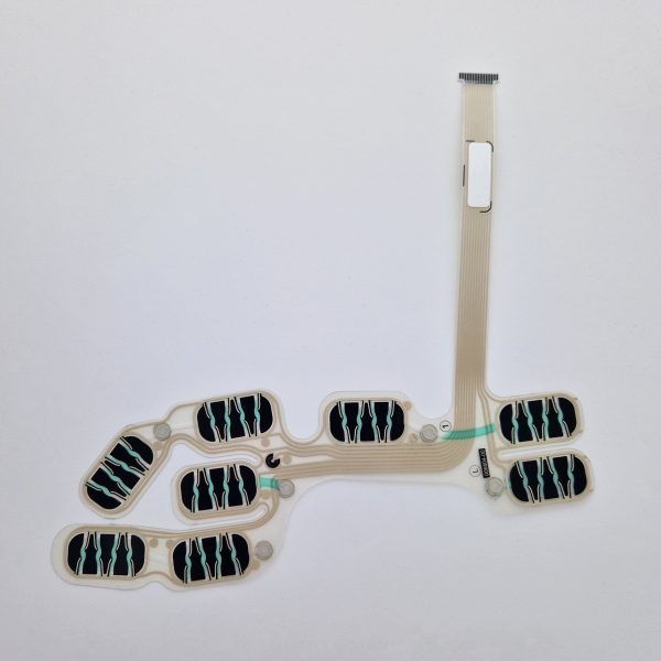 The perfect tool to measure plantar pressure right at the foot during daily life activities! Designed for the use inside a shoe, optimized for gait analytics applications, the smart foot sensor features 8 separate high-dynamic FSR sensors with improved cell dynamics and performance of the newest generation of cells. The sensor design is based on a research study utilizing a simulation model of foot-to-ground interaction based on a Finite Element (FE) analysis and extensive testing and validation efforts. The connector tail is designed for the use of a 15 pin FFC-ZIF connector with a pitch of 1,25mm.
